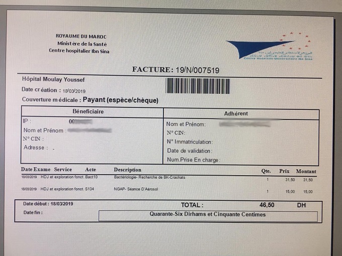 وتظهر "الوثيقة" استمرار فرض الأداء على مرضى داء السل من أجل التشخيص بالأشعة والتحاليل البيولوجية بمستشفى مولاي يوسف للأمراض الصدرية بالرباط، وذلك ضدا على قرار وزير الصحة، أنس الدكالي، القاضي بمجانية العلاج.