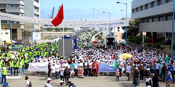 ووقف العمال الذين حجوا من مدن مجاورة ينتمون إلى نقابات قطاعية مختلفة تابعة للاتحاد على مستوى شارع الجيش الملكي، رافعين شعارات ولافتات تدعو إلى "الحرية والعدالة والاجتماعية"، و"عدم قمع الحركات الاحتجاجية في الريف وجرادة وباقي المناطق"، وإطلاق سراح المعتقلين".