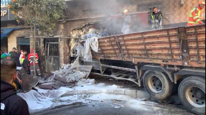 الحادث الاليم وقع بعد اصطدام شاحنة ذات حمولة كبيرة محملة بمواد البناء ببنايتين من 3 و4 طوابق؛ تتكون الأولى من مقهى وشقق سكنية، فيما تحتوي الثانية محلات تجارية وفندقا غير مصنف.