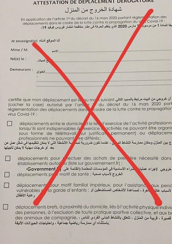 على إثر تداول مجموعة من الوثائق المفبركة على أنها الوثيقة الرسمية للسماح بمغادرة مقر السكن، نفى مسؤول بوزارة الداخلية أن تكون هذه الوثائق صحيحة.